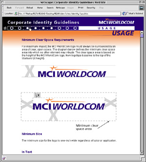 This site allows users to read various guidelines intended to help them successfully use the MCI WorldCom logo. MCI has always been a groundbreaker in the use of brands and brand recognition, and it our intention to continue that. The site also has an extensive download section (disabled on this site) which allows users to download the logo in many formats and color combinations. Unfortunately, this site will soon be rolled into the TeamNet site as well. |